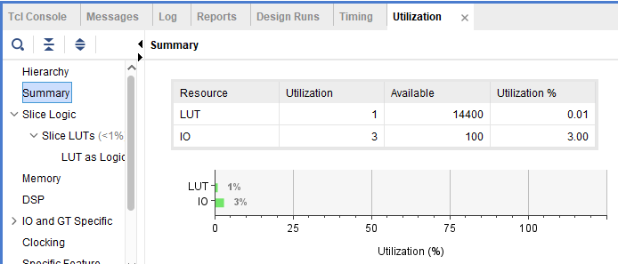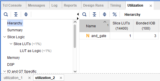 Report Utilization은 합성된 디자인이 FPGA 자원을 얼마나 사용하고 있는지에 대한 상세한 보고서를 제공합니다. 이 보고서에는 LUTs(룩업 테이블), 레지스터, I/O 포트, 블록 RAM 등 FPGA의 각종 물리적 자원 사용 현황이 포함됩니다.