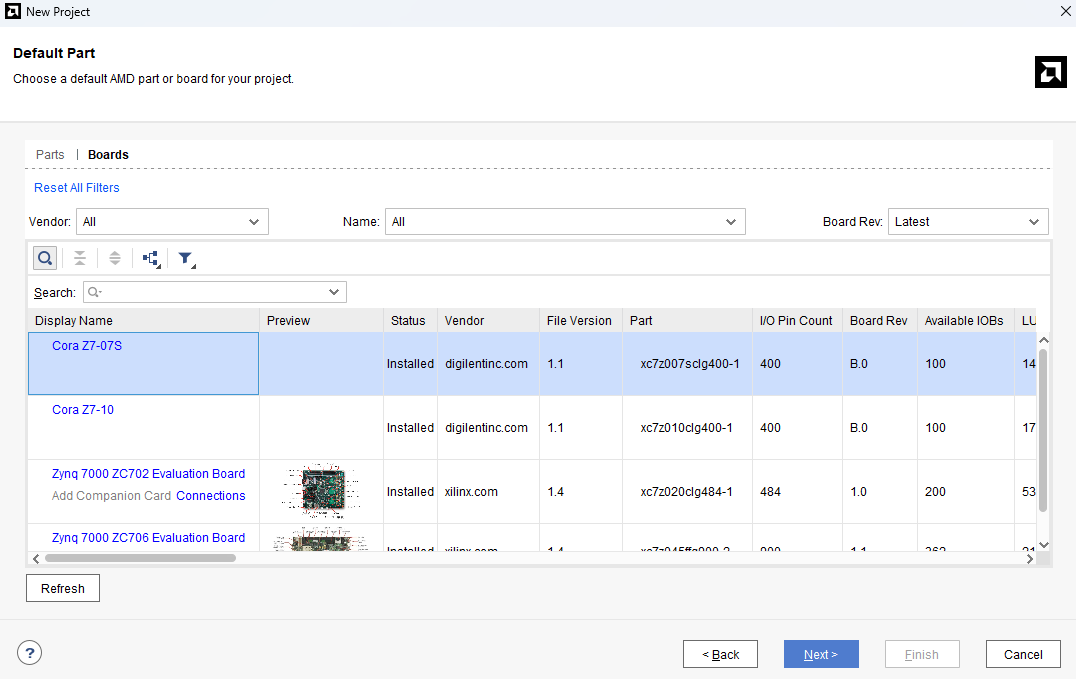 다음은 사용하시는 Board를 지정하고 Next를 눌러주시면 됩니다. 설정이 모두 완료되었으면 마지막으로 Finish를 눌러주세요.
