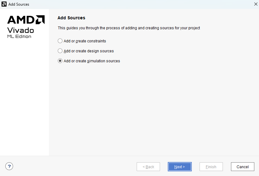 - Add Sources: 프로젝트에 필요한 소스 파일을 추가합니다. Verilog, VHDL, 제약 파일 등을 포함할 수 있습니다.