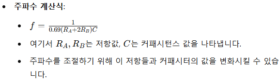타이머, 펄스 생성, 딜레이 회로, 알람 시스템, 깜빡이 회로, 주파수 발진기 등 다양한 용도로 사용됩니다.