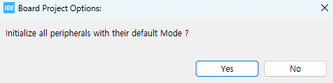 설정이 모두 끝났으면 상단에 톱니바퀴처럼 생긴 모양을 눌러주면 되는데 이 기능은 설정한 마이크로컨트롤러의 핀 및 주변 장치 구성을 기반으로 코드를 자동 생성하는 기능을 담당합니다. 이렇게 생성된 코드는 프로젝트에 바로 사용할 수 있으며, 개발 과정을 보다 빠르고 효율적으로 진행할 수 있게 돕습니다.