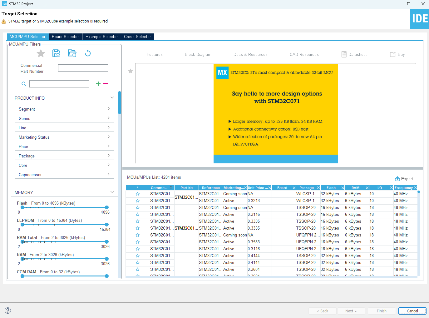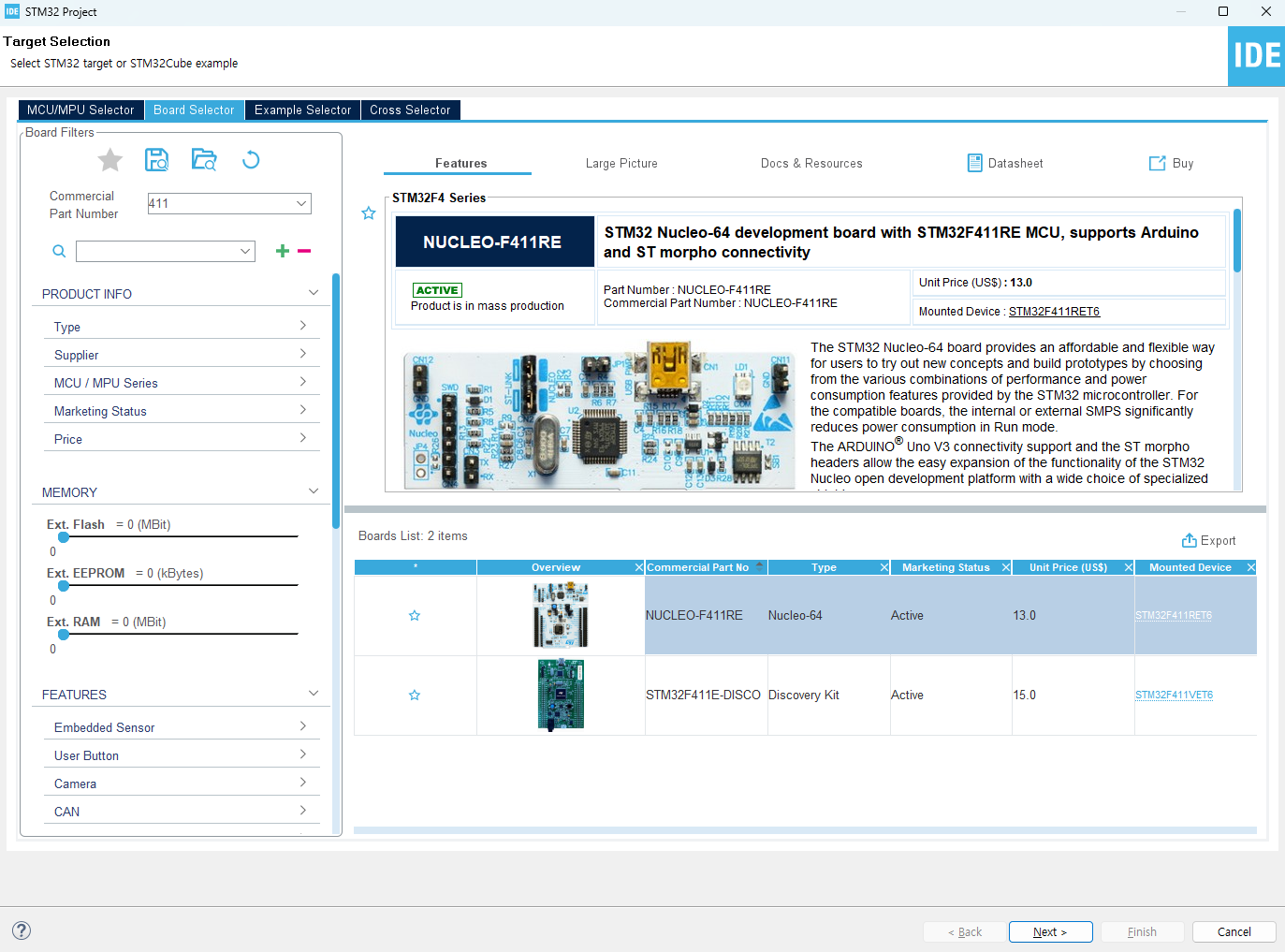 File - New - STM32 Project를 눌러주면 됩니다. 그 후 사용하시는 Board를 검색하셔서 선택 후 Next를 눌러줍니다.