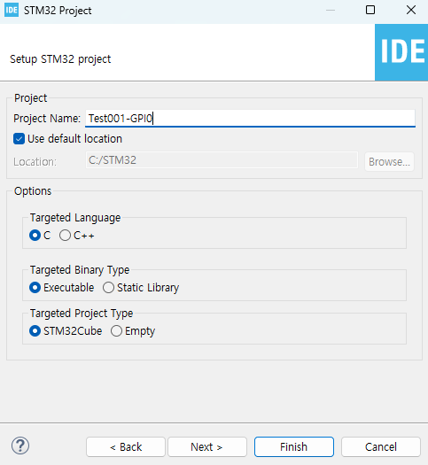 그 후 Project Name을 지정해주시고 Finish를 눌러주시면 IDE가 생성이 됩니다.