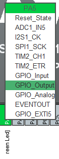 LED는 PA5에 배치되어 있고 기본적으로 GPIO_Output으로 설정되어 있습니다.